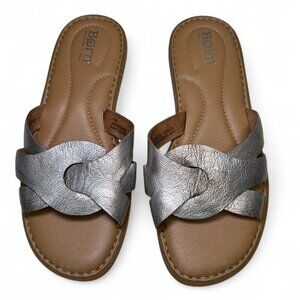 BORN Metallic Isabella Leather Slide Sandal - Light Gold, Sz 7, NWOB