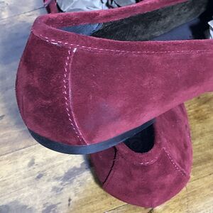 BORN Moccasin Loafers Women’s 10 Red Burgandy Suede Leather Slip On Holiday New
