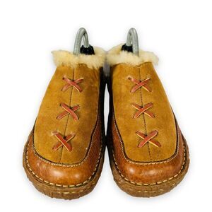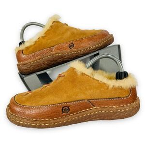 BORN Mohawk Shearling Winter Clogs Slippers Brown Suede / Leather Women's 5