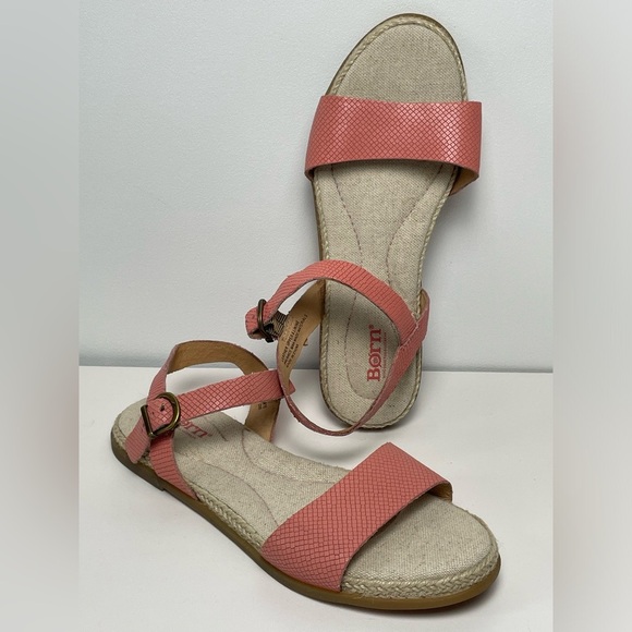 BORN Pink Peach Snake Embossed Ankle Strappy Flats Sandals Women size 9M