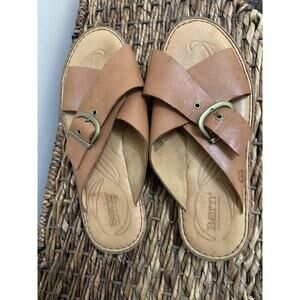 BORN Rio tan leather slip on sandals minimalist neutral comfort 10 M Old Money