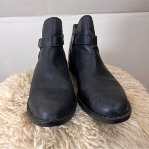 BORN SHOOTIES ANKLE BOOTS. Black- zipper openings. Buckles & Straps embellished