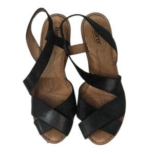 BORN Sandals Women's Size 10 Black Wedge Open Toe Shoes CQL12 883603