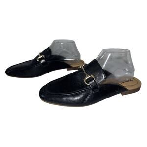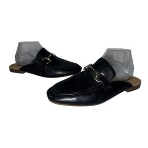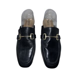These BORN Women's Size 9M Black Leather Slip-On Mules are designed for ultimate comfort and style. With a flat heel and cushioned insole, these loafers are perfect for work, travel, or casual outings. The gold-tone front accent and logo detail add a touch of elegance, while the arch support and cap toe provide added comfort and durability. Made of high-quality leather with a rubber outsole, these mules are a versatile option for any season and occasion.