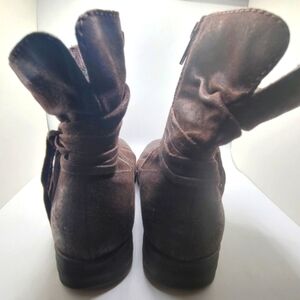 BORN Size 9.5M Brown Upper Leather Fringe Zipper Ankle Boot Boho Chucky Heel