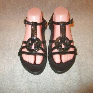 BORN Talica LEATHER Sandals Size 10 ANKLE STRAP Arch ADJUSTABLE Flats TWIST Blac