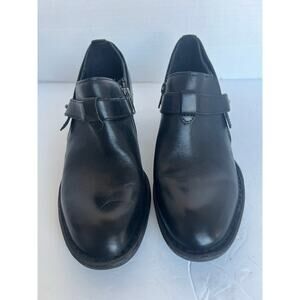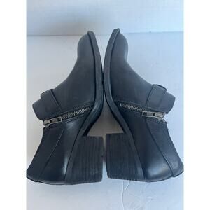 BORN Timmons Chukka Black Leather Zip Block Heel Straps Bootie Shoes Sz 8.5