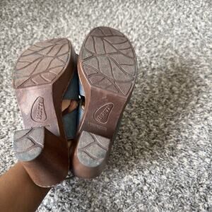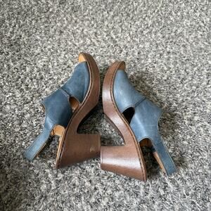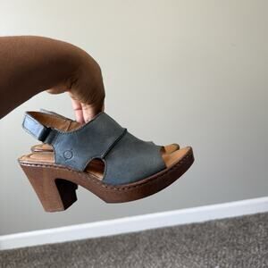 BORN WEKIVA Blue Leather Open Toe Slingback Pumps Sandals Block Heel Sz 7 Chunky platform