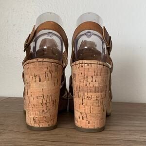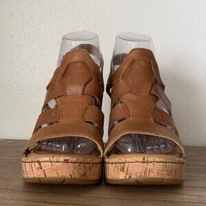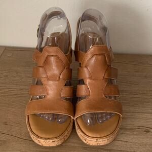 BORN Wedge Platform Sandal Bernese Cage Brown Leather Cork 9 US Buckle Slingback