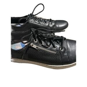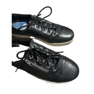 BORN Women Tamara Sneakers Lace Up Side Zip Black Perforated Leather Size 8