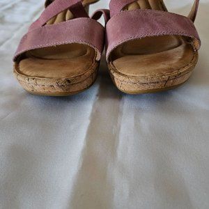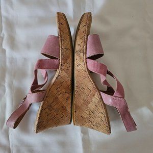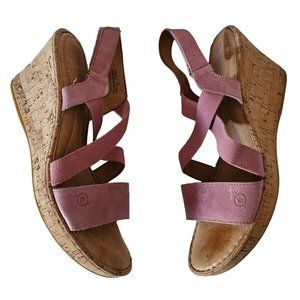 BORN Women's HYURO Strappy Cork Wedge Sandals, Pink Size 11M