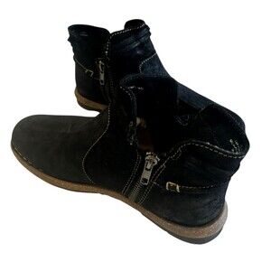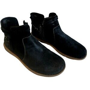 BORN Wynter Black Suede Distressed Ankle Bootie Side Zip Women Size 8.5