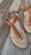 BORN Yarrow Braided Leather Ankle T-Strap Flat Sandals, Cognac Tan sz. 8M