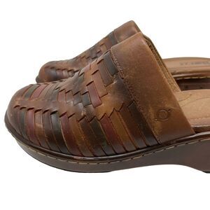 BORN Yucatan 10 / 42 Clog Slide Wedge Woven BrownLeather Comfort Shoes Womens