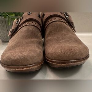 The upper is a soft hand finished distressed leather & a soft fabric suede lining.