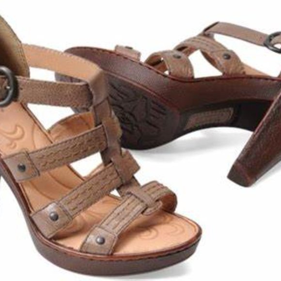 BORN taupe FELICE strappy LEATHER heels platform Size 10
