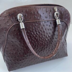 BORSE IN PELLE Genuine Leather Burgundy Brown Ostrich Embossed Satchel ITALY