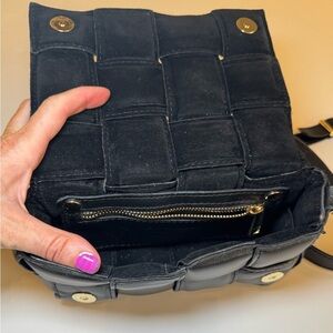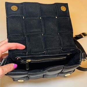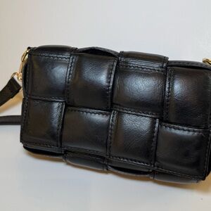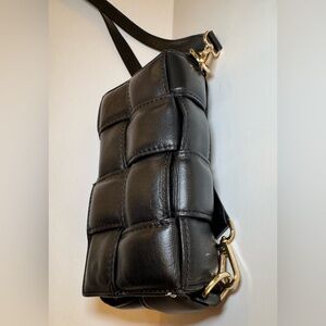 black quilted leather crossbody bag with gold-tone hardware. Perfect for any occasion. In great condition. Made in Italy