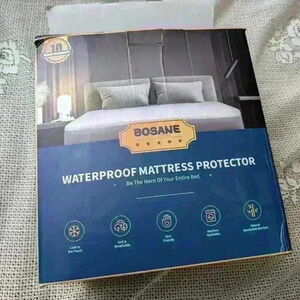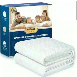 Protect your full-sized mattress with the BOSANE Premium 100% Waterproof Mattress Protector made from cooling bamboo material. This beautiful white mattress protector features an extra layer of comfort and protection to your bed. With its cooling insulation and breathable features, you can sleep comfortably while keeping your bed dry and clean.