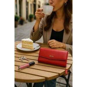 BOSI red leather wallet, luxury tri-fold leather wallet, designer wallet with coin pocket, Colombian leather goods, cherry red wallet, Coach style wallet, Tory Burch wallet dupe, Cuyana leather wallet, leather clutch wallet, compact card wallet, minimal luxury accessories, zip coin wallet, travel leather wallet, red statement wallet, giftable designer wallet, luxury gift idea, gift for her, designer gift under 100, red leather gift, Valentine’s Day gift, holiday gift idea, birthday gift for women, elegant gift for mom, chic stocking stuffer, bridesmaid gift, anniversary gift idea, giftable wallet, thoughtful women’s gift, premium gift accessory, everyday luxury gift