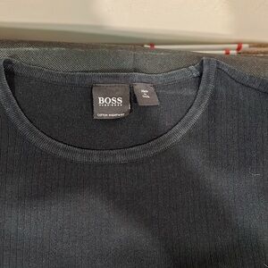 Elevate your wardrobe with this sleek black t-shirt from BOSS. Perfect for any occasion, this shirt offers both style and comfort.