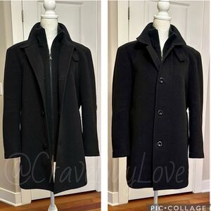 BOSS CASHMERE COAT 36R PEACOAT CLASSIC LINED WARM WINTER 31” LONG BLACK EUC