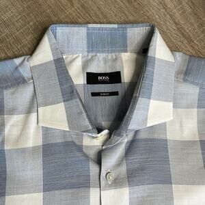 BOSS HUGO BOSS Blue Plaid Long Sleeve Button Down Shirt Men’s Size 18 Neck