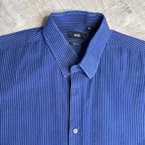 BOSS HUGO BOSS Blue Striped Long Sleeve Button Front Dress Shirt Size 16.5 Neck