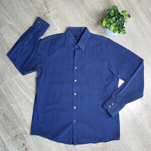 BOSS HUGO BOSS Blue Striped Long Sleeve Button Front Dress Shirt Men’s