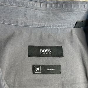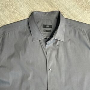 BOSS HUGO BOSS Gray Slim Fit Long Sleeve Button Front Dress Shirt Size 18 Neck