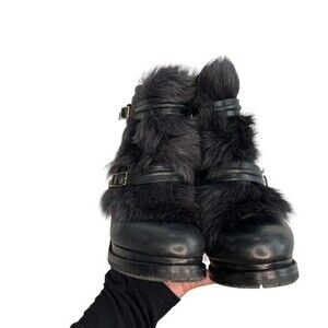 BOSS HUGO BOSS One of a Kind Rabbit Fur Lined Heeled Combat Boots Booties EU 37