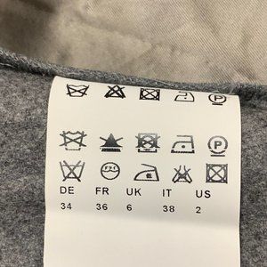 BOSS HUGO BOSS Stretch Gray Virgin Wool Wrap Skirt Brown Faux Leather Trim Sz 2