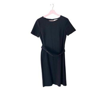 This is a gently used BOSS Hugo Boss Black Wool Blend Stripe Short Sleeve Belted Dress Size S. In very good condition. Minimal wear throughout. See all pics for condition. Size and fabric tag removed. See measurements below for sizing: