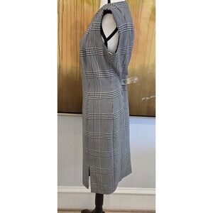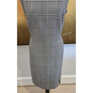 BOSS Hugo Boss Dress Womens Large Black White Sheath Sleeveless Houndstooth Work
