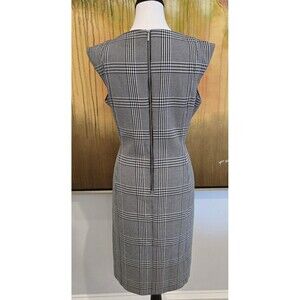 Style: Sleeveless sheath dress with classic black and white houndstooth/plaid check