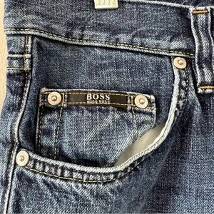 BOSS Hugo Boss Men Jeans. 5 pocket design. Button closure, zip fly. Appx measurements with garment laying flat: