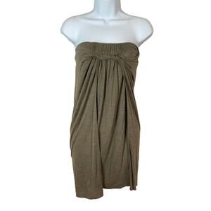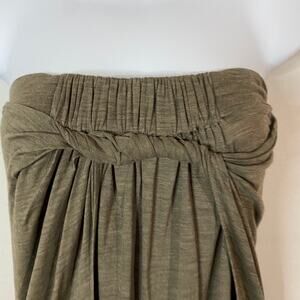 BOSS Hugo Boss Olive Green Twist Front Layered Strapless Mini Dress Sz S