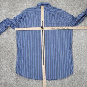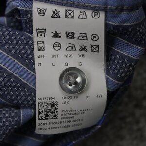 BOSS Hugo Boss Shirt Mens Large Blue/Gray Striped "Lex" Cotton L/S Button Up