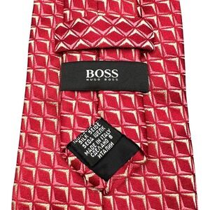 BOSS Hugo Boss Tie Mens Red Square Diamond Geometric Silk Luxury Necktie Italy