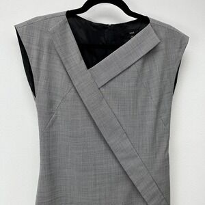 BOSS Hugo Boss Womens Grey Houndstooth Asymmetrical Neck Sheath Dress 0