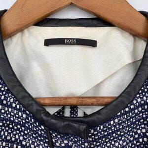 Hugo Boss Womens Tweed Linen Blend Cropped Blazer Jacket 8 Business Casual