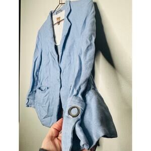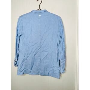 BOSS Light Blue Silver Gromet Front Button Linen Blend Blazer Boxy Jacket Size 4