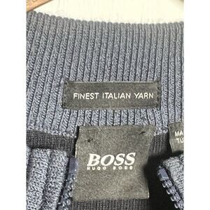 Elevate your wardrobe with this sophisticated BOSS men's sweater. Crafted from the finest Italian yarn, this pullover features a stylish 1/4 zip design and comes in a striking blue color. The sweater is available in a size M, making it a perfect fit for regular-sized men.