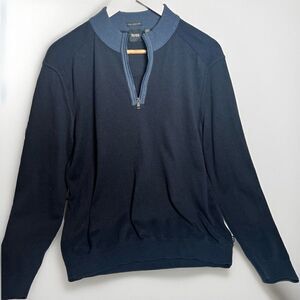 BOSS Mens Finest Italian Yarn M Sweater 1/4 Zip Blue W