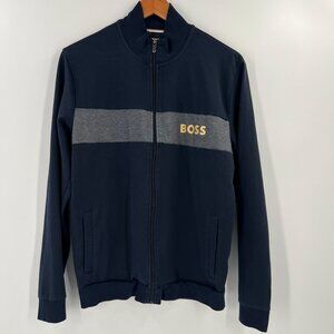 BOSS Men's Medium Navy Blue Zip Up Sweatshirt Cotton Blend Athletic Loungewear