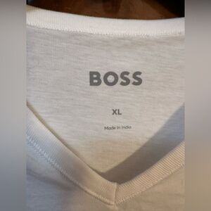 Elevate your wardrobe with this classic white V-neck shirt from BOSS. Perfect for any occasion, this shirt offers both style and comfort.