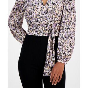 BOSS Orange Women's Banella Abstract-Print Tie-Hem Top Size XXL Purple MSRP $148