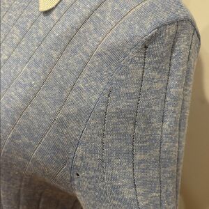 Blue (69% Linen, 31% Polyester) Casual dress. Collared. Short sleeves. Front button closure. 46.5" from shoulder to hemline. Imported.