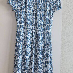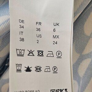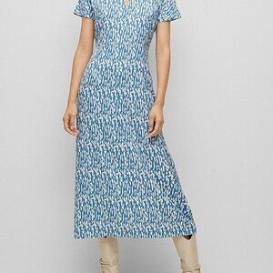 A slim-fitting dress crafted in fluent fabric by BOSS Womenswear. Designed with a seasonal print and keyhole neckline, this midi-length dress brings feminine style to a workwear wardrobe. For our RESPONSIBLE products, we always use at least 60% more sustainable raw materials. This product is made with certified cellulose fibers, derived from natural raw wood material and sourced from responsibly managed forests. We cooperate with external organizations to ensure respectful treatment of virgin and endangered forests. Condition: New without tags. Never worn.