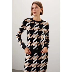 Multicolor houndstooth knit. Top. Long sleeves. Crewneck. Pull on.